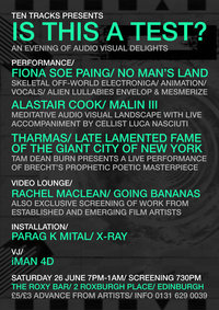 Come to the Roxy Arthouse on June 10 for Neverzone and June 26 for Is This a Test? where I’ll be presenting my latest installation X-Ray, as well as to catch other brilliant Scotland-based artists.  More info on the flyers below.