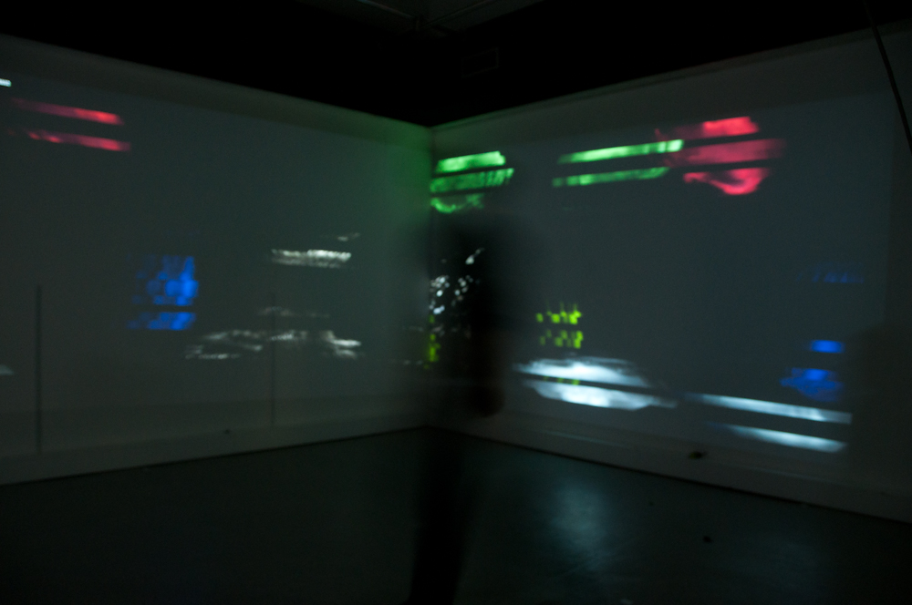 Responsive Ecologies is part of an ongoing collaboration with ZSL London Zoo and Musion Academy. Collectively we have been exploring innovative means of public engagement, to generate an awareness and understanding of nature and the effects of climate change. All of the contained footage has come from filming sessions within the Zoological Society; this coincidentally has raised some interesting questions on the spectacle of captivity, a issue which we have tried to reflect upon in the construction and presentation of this installation. The nature of interaction within Responsive Ecologies means that a visitor to the space can not simply view the installation but must become a part of its environment. When attempting to perceive the content within the space the visitor reshapes the installation. Everybody has a degree of impact whether directed or incidental, and when interacting as a group it is interesting to see how collective behaviour can develop and incite the outcome of the work.